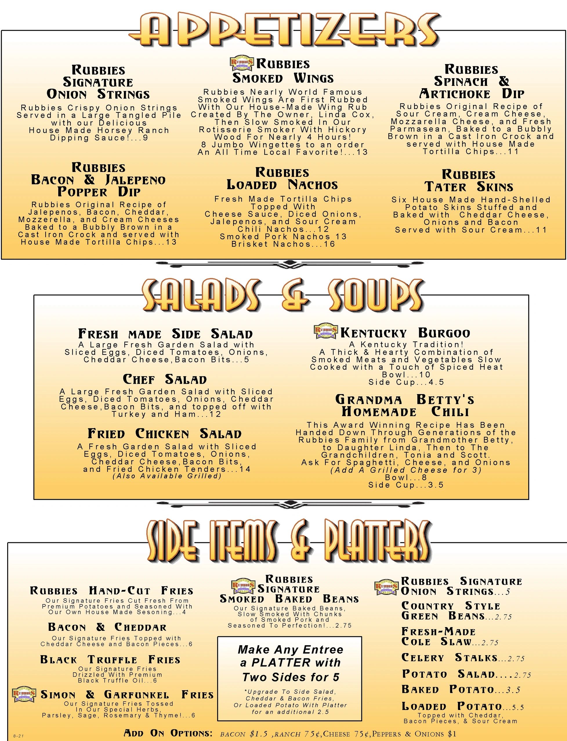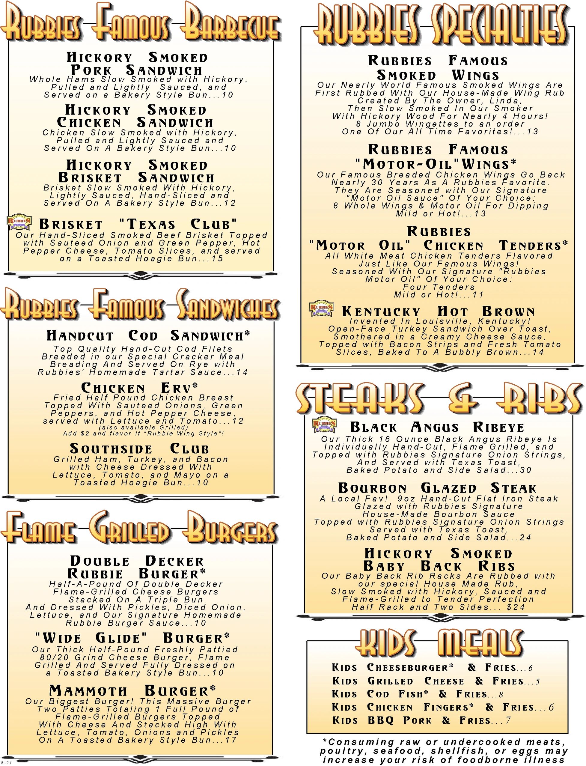 At Rubbies we specialize in Local fare, including In House Hickory Smoked Meats! Experience our World Famous Smoked Wings!